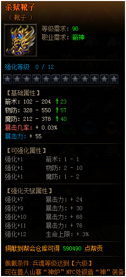 获取方式:击杀神罗天界中的BOSS“神罗天神”有几率掉落装备碎片,使用碎片可在NPC“兵魂之刃”处合成